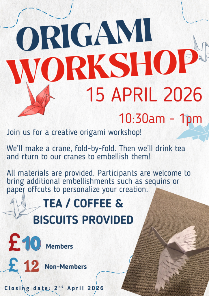Join us for an Origami Workshop. Create an Origami Crane, fold-by-fold.