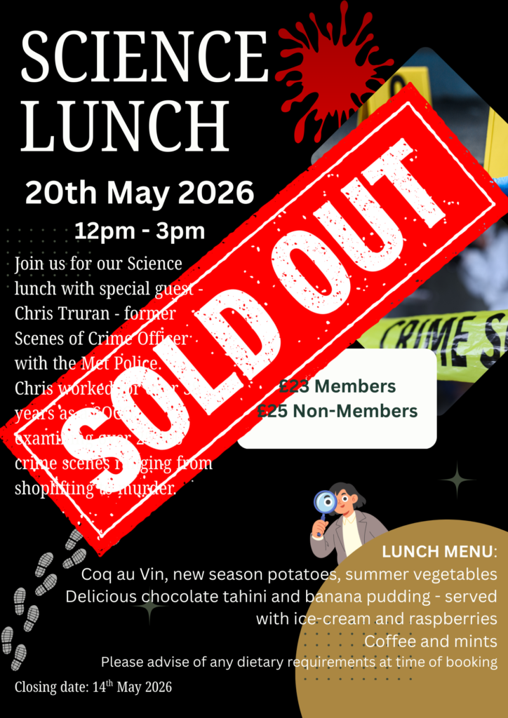 Join us for our Science lunch with special guest – Chris Truran, a former Scenes of Crime Officer (SOCO) with the Met Police. Chris worked for over 38 years as a SOCO, examining over 25,000 crime scenes.